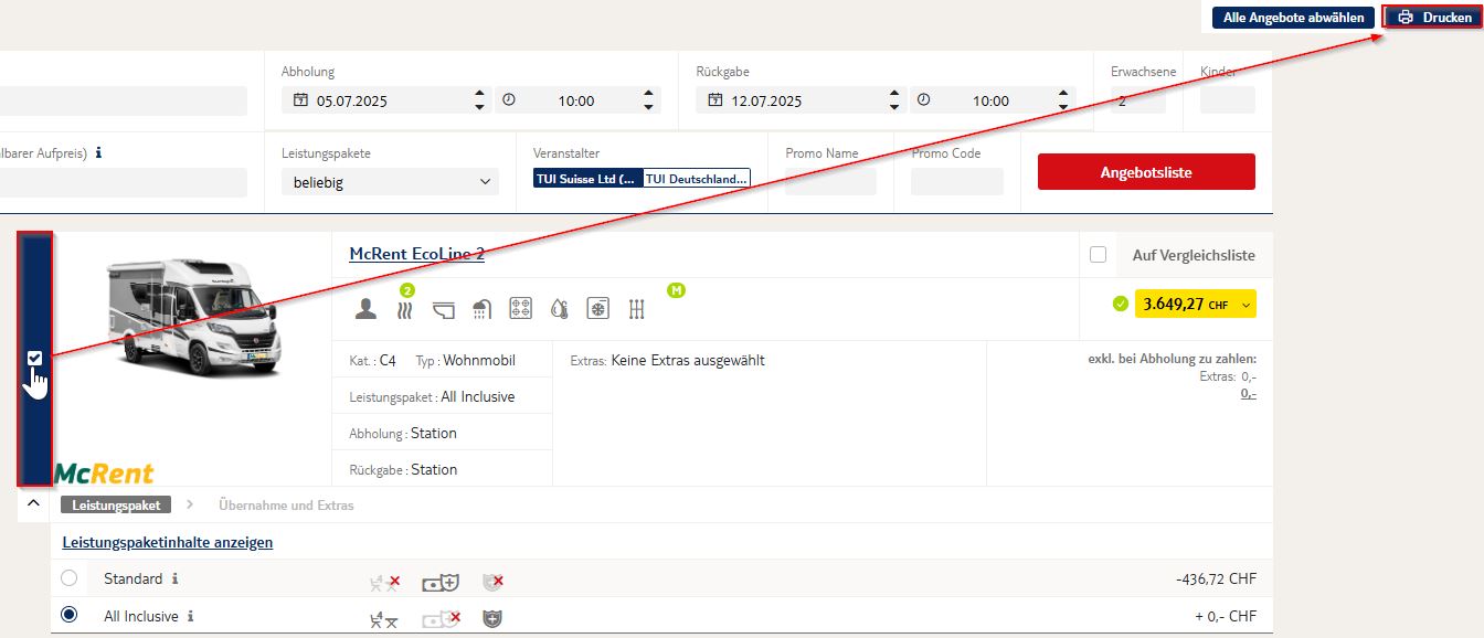 Version français clicker ici 1. Einstieg Einstieg Camper/ Camper Rundreisen direkt über IRIS.plus oder den IRIS.plus Button wählen Zielgebiet / Drei-Letter-Code der Station / Station-Ort /Name des Anbieters eingeben Abholtag / Übernahmetag und Rückgabetag eingeben. ! Uhrzeiten am besten gar nicht verändern. ! So bekommen Sie die grösste Angebotsliste. Camper werden oft nachmittags übernommen und vormittags zurückgegeben. Wann genau, steht in den Nutzungsbedingungen des Partners. An Sonn- und Feiertage denken, ggf. Termin variieren. ! USA/Kanada: an die Pflichtübernachtung/Transfernacht nach dem Langstreckenflug aus Europa kommend denken! Anzahl Erwachsene / Kinder eingeben. Dann werden auch die entsprechend grossen Camper angezeigt. Bei der Angabe "2 Erwachsene" werden alle verfügbaren Varianten vom Camper Van bis zum Wohnmobil-Bus angezeigt. Bei "4 Erwachsenen" nur die verfügbaren mit grösseren Betten, bei "2 Erw. und 2 Kinder" auch die verfügbaren mit grösseren und kleineren Betten. Einwegmiete: Die Kunden wissen schon, dass sie eine Einwegmiete buchen wollen, also den Camper an einem anderen Ort abgeben möchten als sie ihn übernommen haben. Dann geben Sie gleich den gewünschten Rückgabeort an. So erhalten Sie in der Angebotliste nur die Anbieter/Partner, die an beiden Orten Stationen haben und Einwegmieten anbieten. Filtern? Natürlich können Sie auch die Filter links nutzen. Bei nicht gesetzten Filtern ist die Angebotsliste am grössten. Ist der Wunschcamper nicht dabei, können auch Alternativen schnell gefunden werden. Setzen Sie Filter, wird die Angebotsliste kleiner. Das lohnt sich immer dann, wenn Sie genau wissen, was Sie suchen oder angezeigt bekommen möchten. Findet sich der Wunschcamper nicht, einfach die Filter wieder rausnehmen. 2. Angebot darstellen/drucken In der Angebotsliste werden alle verfügbaren Camper angezeigt. Sie können die verschiedenen Camper Angebote zum Vergleich anklicken und bekommen die Vergleichsliste angezeigt. Leistungspakete öffnen -> So bekommen Sie das Standard - und All Inclusive-Paket angezeigt. Die kleinen Symbole helfen bei den Inhalten. Details und Informationen zum Camper bekommen Sie über die Produktinfo. Dazu klicken Sie einfach auf das "i" hinter dem Leistungspaket. Um das Camperangebot auszudrucken, kann das Drucker-Symbol rechts oben ausgewählt werden. Anschliessend sind die zu druckenden Angebote durch ein Häcken auszuwählen. Die Produktinfo beinhaltet alle Details und Informationen zu dem gewählten Camper Fahrzeuginformationen mit Bildern aussen, innen und Grundriss(en), Bettenanzahl- und grössen, Fahrzeugmassen und weiteren Eigenschaften Anbieterinformationen mit Infos zu Ermässigungen, Einwegmieten, zubuchbaren Extras, etc. Die Nutzungsbedingungen des Anbieters kompakt mit allem Wichtigen und Bedingungen für diesen Camper. Stationsinformationen mit Stationsadresse und Öffnungszeiten. Achtung: Die Übernahme- und Rückgabezeiten entsprechen oft nicht den Öffnungszeiten der Station. Bitte beachten Sie die Hinweise in den Nutzungsbedignungen. 3. Angebot in den Warenkorb legen/auswählen den gewünschten Camper mit gewünschtem Leistungspaket in den Warenkorb legen Extras auswählen, wenn gewünscht Transferhotel (USA, Kanada, teils Südafrika) angeben, wenn bereits bekannt und Transfer gebucht oder inkludiert ist. (oder spätestens mit dem Online-Check-In übermitteln) In den Warenkorb gehen Namen aller Mitreisenden ausfüllen Buchung abschliessen CAMPER RUNDREISEN ausschliesslich über den Einstieg Camper/ Camper Rundreisen buchen Rundreisen USA und Rundreisen Kanada ab 12 Nächten >> entsprechend die Reisedaten vorgeben Transfernacht nach dem Flug aus Europa nicht vergessen Rundreise und Übernahme des Camper haben den gleichen Beginn 1. Camper separat buchen 2. Camper Rundreise auf demselben SPNR buchen, ggf. weitere Personen dazu buchen sobald Camper bestätigt wurde, sofern dieser auf Anfrage war, wird die Rundreise angefragt. dazu bitte unbedingt den Fragebogen ausfüllen (welche Art von Campingplätzen wünscht der Kunde, Namen der Mitreisenden, Camper Vorgangsnummer) der Preis der Rundreise enthält den Stellplatz pro Nacht für den Camper auf den Campingplätzen und zwei Erwachsene weitere Mitreisende müssen dazugebucht werden die Anzahl der Nächte kann variiert werden gemäss Ausschreibung, der Verlauf kann nicht angepasst werden. 1. Entrée Choisir un camping-car/un circuit en camping-car directement chez IRIS.plus ou sélectionnez le bouton IRIS.plus dans CETS Saisir la destination / le code à trois lettres de l'agence / la ville de l'agence / le nom du prestataire. Saisir le jour de prise en charge / le jour de prise en charge et le jour de retour. ! Il est préférable de ne pas modifier les heures. ! Vous obtiendrez ainsi la plus grande liste d'offres. Les camping-cars sont souvent pris en charge l'après-midi et rendus le matin. L'heure exacte est indiquée dans les conditions d'utilisation du partenaire. ! penser aux dimanches et aux jours fériés, le cas échéant, varier les dates. ! USA/Canada : penser à la nuit obligatoire/transfert après un vol long-courrier en provenance d'Europe ! Indiquer le nombre d'adultes / d'enfants. Les camping-cars de taille correspondante seront alors affichés. Si vous indiquez "2 adultes", toutes les variantes disponibles, du camping-car van au camping-car bus, seront affichées. Pour "4 adultes", uniquement ceux disponibles avec des lits plus grands, pour "2 adultes et 2 enfants", également ceux disponibles avec des lits plus grands et plus petits. Location en aller simple : Les clients savent déjà qu'ils veulent réserver une location aller-simple, c'est-à-dire qu'ils veulent rendre le camping-car à un autre endroit que celui où ils l'ont pris en charge. Dans ce cas, indiquez tout de suite le lieu de restitution souhaité. Ainsi, tu n'obtiendras dans la liste des offres que les prestataires/partenaires qui ont des stations aux deux endroits