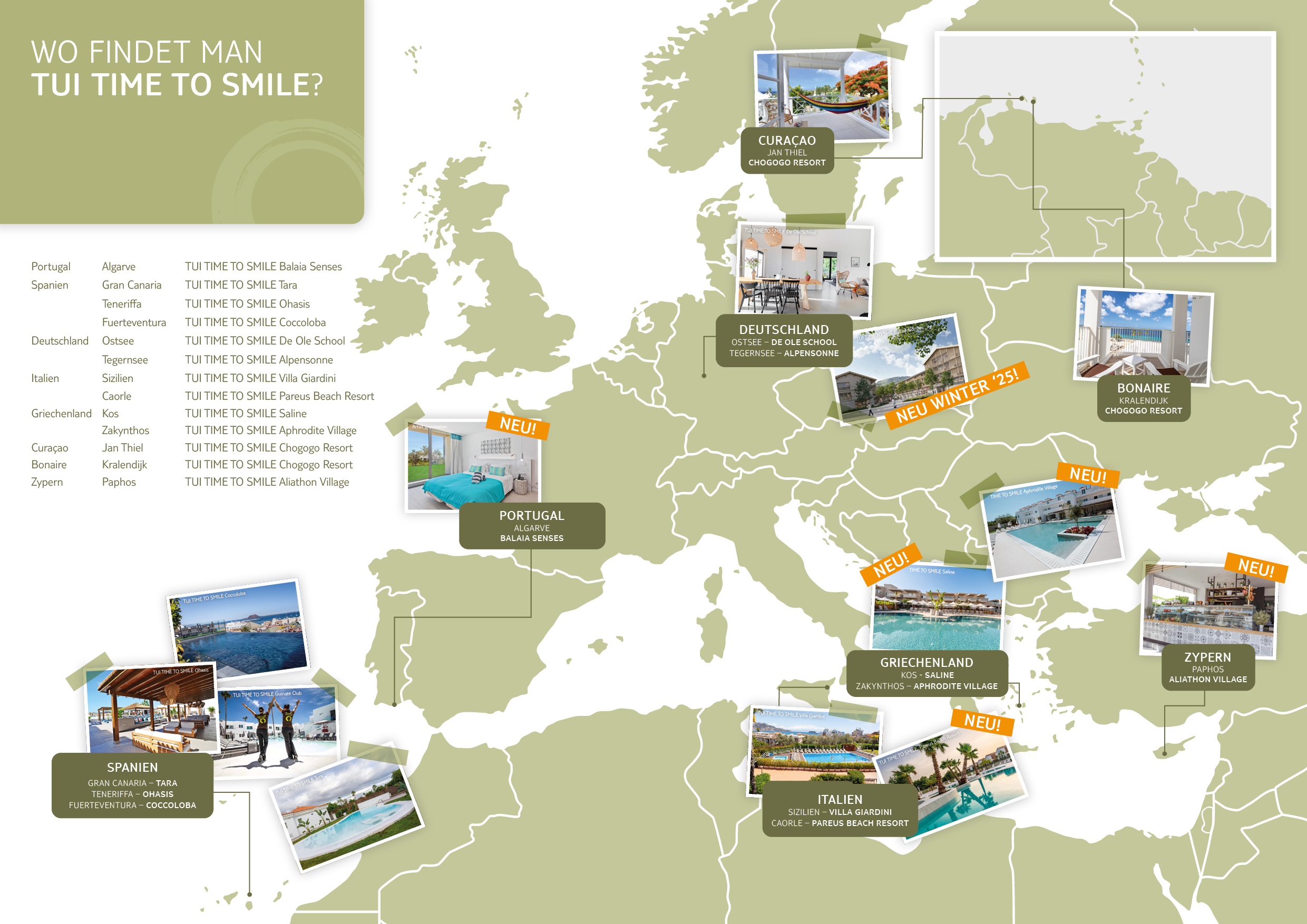 In der beigefügten Broschüre und Sales Präsentation finden Sie alle Informationen zu TUI TIME TO SMILE sowie eine Übersicht der Hotels.